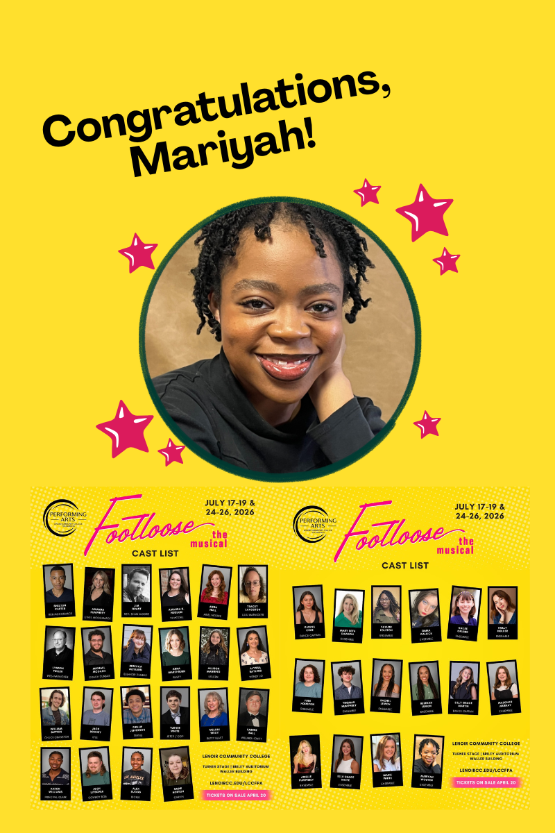 So, it came as no surprise when Mariyah shared that she’d been cast in Lenoir Community College’s production of Footloose. No doubt the audition team at LCC saw what we at ArtXecute have known for quite some time—Mariyah is a force to be reckoned with.
